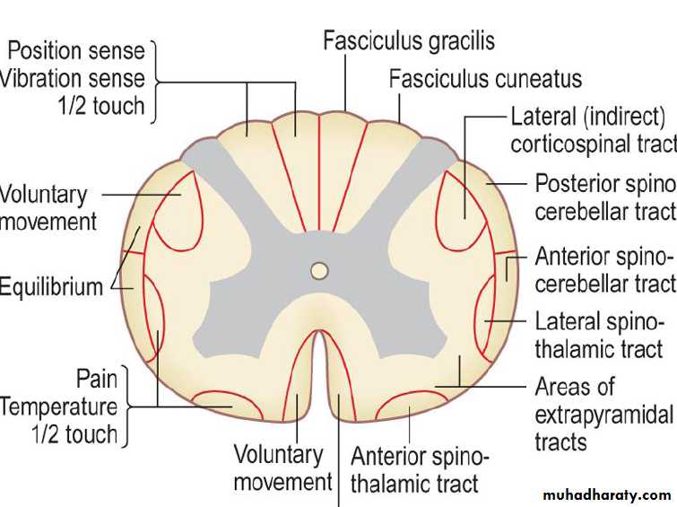 5-Unilateral cord lesion (Brown-Séquard syndrome)= hemisection of spinal cord