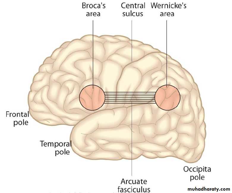 Speech is the process of articulation.Pathway is cerebral cortex-brainstem-cranial nerves(mainly IX, X, XII,VII)-bulbar and tongue muscles.
