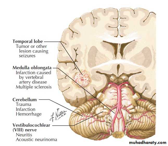Disorders of vestibular nerveLesions result in : vertigo, nystagmus and ataxia