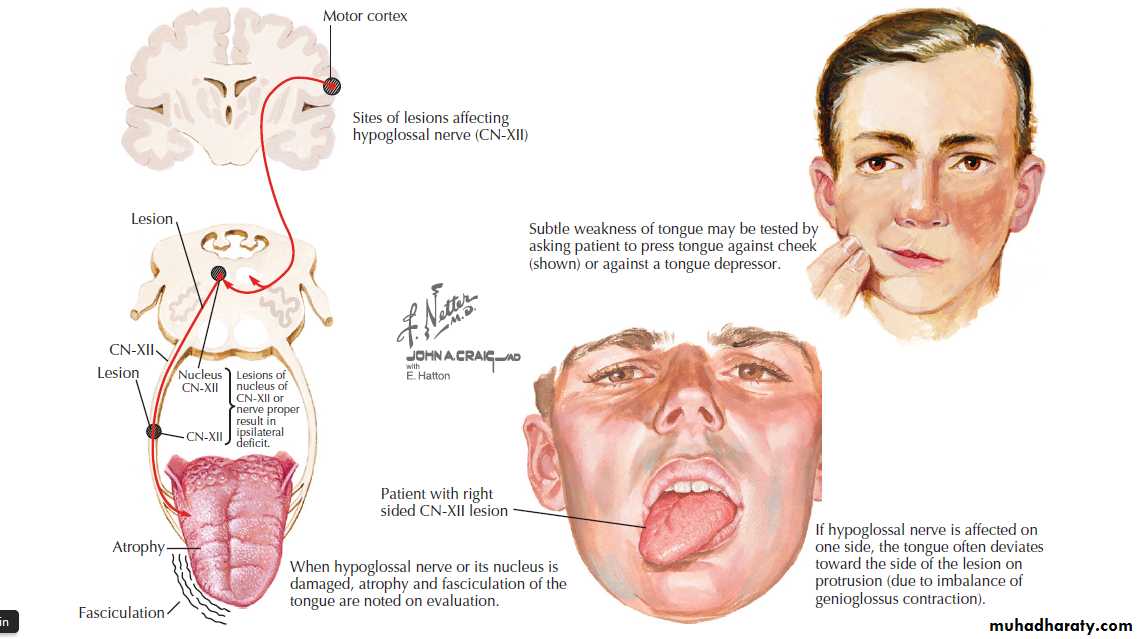 Injury results in weakness or paralysis of respective musclesHypoglassal nerve