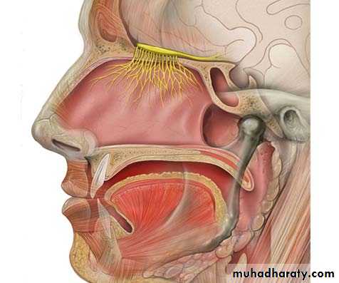 causes of anosmia:A-nasal obstruction by infective or allergic oedema of the nasal mucosa.