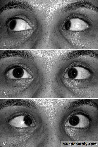 - VI palsy produces horizontal diplopia maximal to the direction of weakness.