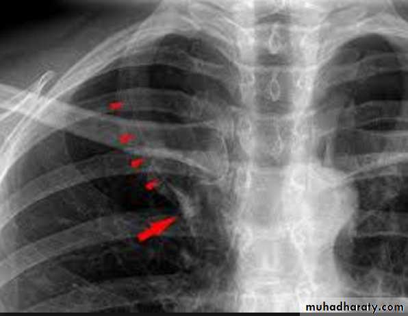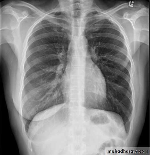 • 1- trace the diaphragm: the upper surface of diaphragm should be clearly visible from CPA to other, except when heart and diaphragm in contact with diaphragm.