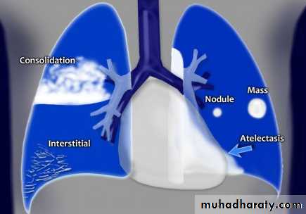 The fluid either exudate : often called consolidation, or transudate: pulm. Edema.