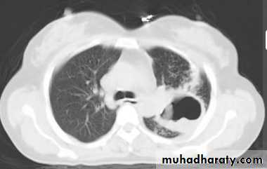 Cavitation(abscess formation) : within consolidated areas in the lung may occur with many bact. And fungal infections, occasionally in infarction and Wegener granulomatosis.