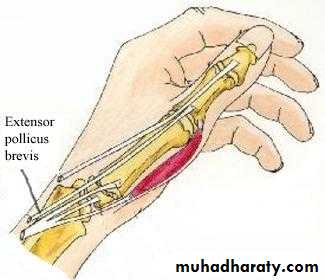 Inflamed tendon sheaths of abductor pollicis longus and extensor pollicis brevisPain over the radial aspect of the wrist.