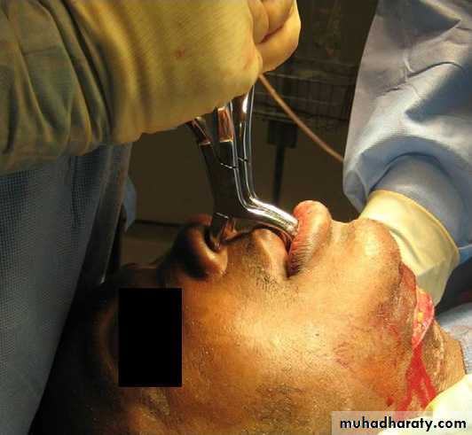 Closed reduction techniques involving (IMF) for a period of 4 to 6 weeks can be used. In cases in which there is displacement of the maxilla with an occlusal discrepancy, Rowe disimpaction forceps can be used to mobilize and reduce the maxilla.