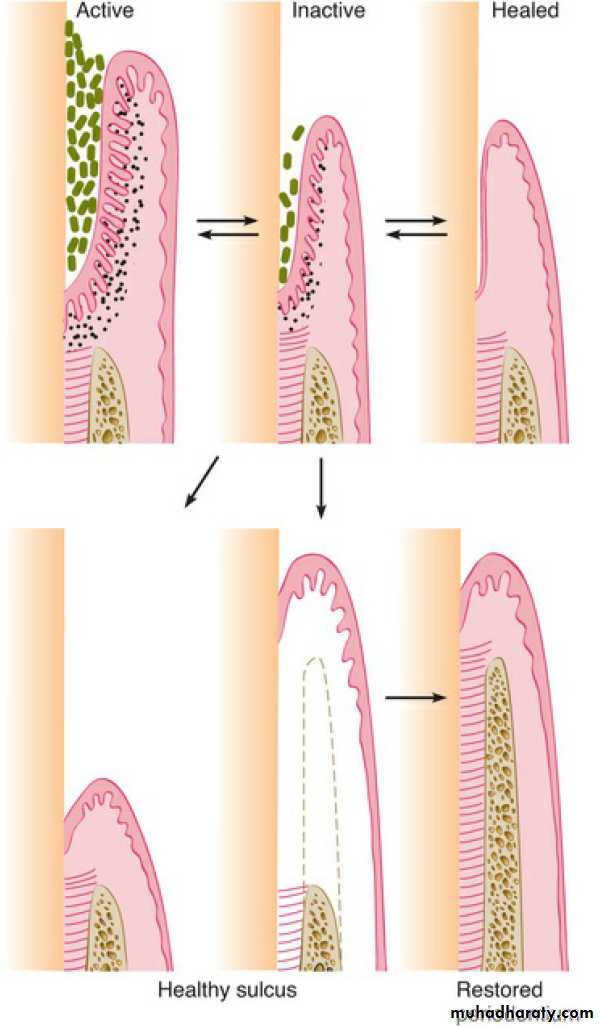 A periodontal pocket can be in an active state or a period of inactivity or quiescence.