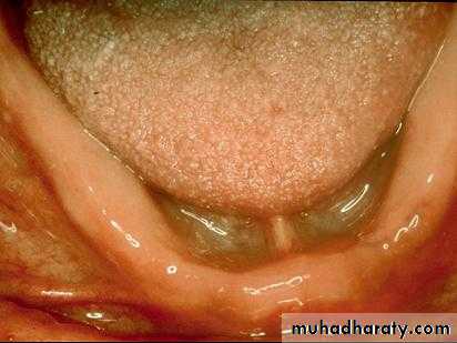 4. As a result of the reduction of the residual ridge, the floor of the mouth becomes relatively superficial.