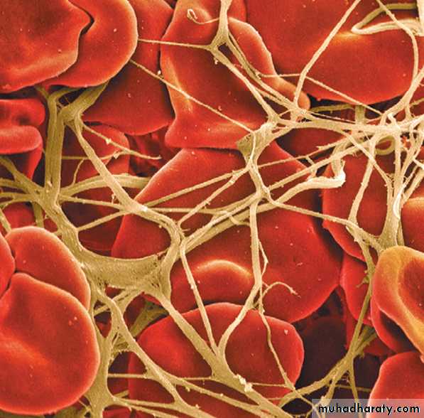 • ii. Fibrin monomer polymerizes with other monomer molecules and form loosely arranged strands of fibrin.