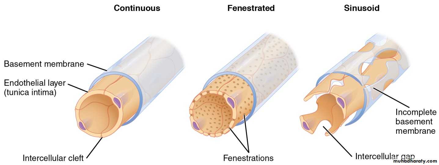 The permeability of fenestrated capillary is much greater than that of continuous capillary therefore found in tissues in which rapid exchange of substances occur3. Sinusoidal capillary