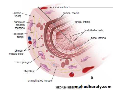 vasoconstriction or vasodilatation.Tunica media consists mainly of smooth muscle cells. Hence the name muscular artery
