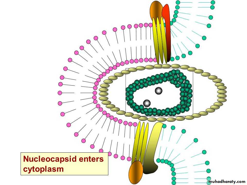 • * With most viruses, the uncoating is accomplished by the action of lysosomal enzymes present inside the phagocytic vacuoles and Golgi vesicles of the host cell.