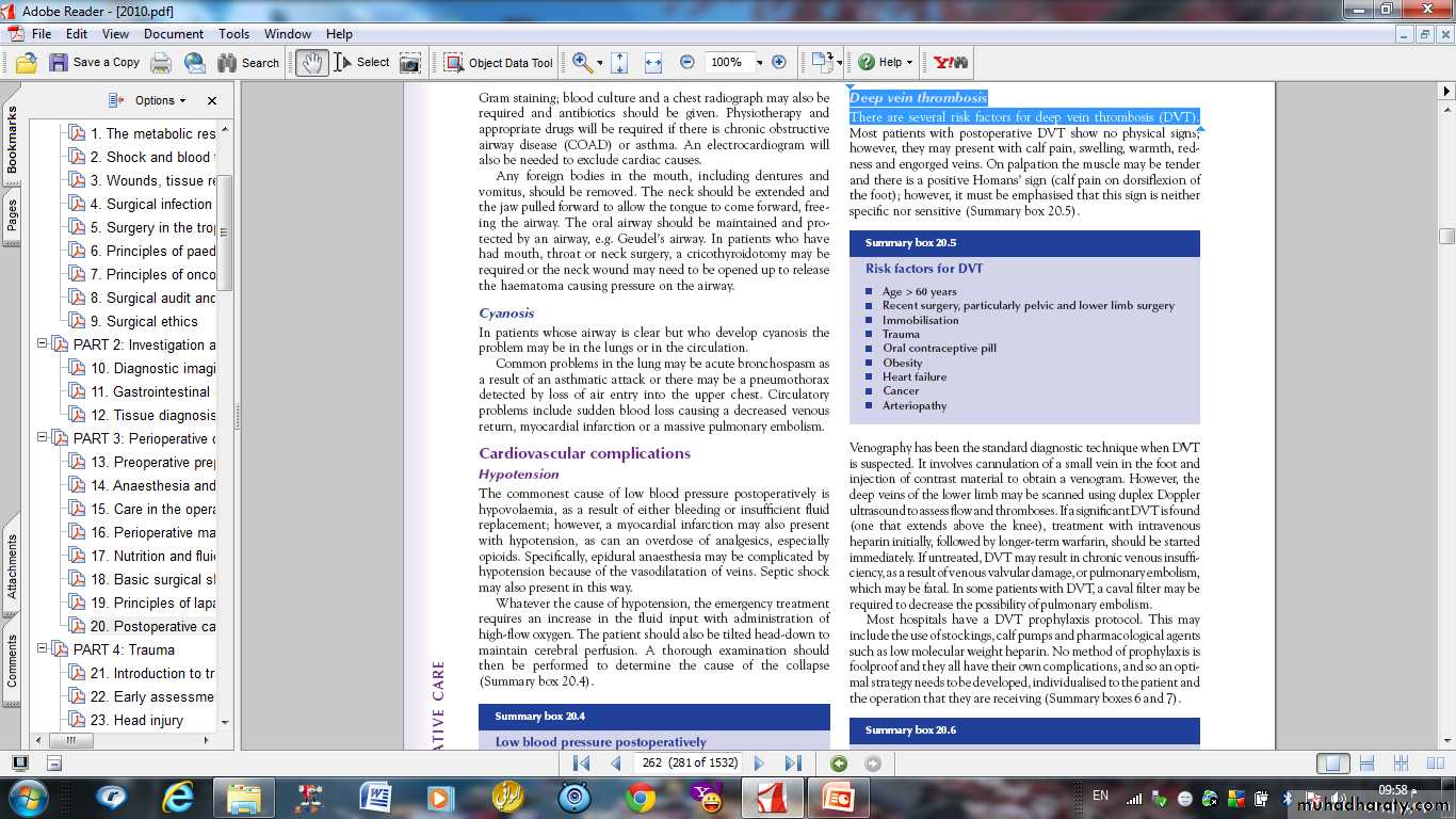 POSTOPERATIVE COMPLICATIONS COMPLICATIONS ASSOCIATED WITH THEINTRODUCTION OF INFUSIONAir embolismThis may occur when more than 15 ml of air is accidentally introduced during or after insertion of a venous catheter. The airenters the right atrium preventing adequate right heart filling and causing a drop in the blood pressure, a rise in the pulse rate and distension of the jugular venous pressure (JVP). It can beavoided by running fluids through the giving sets before connecting them to the patient. Patients should also be head-down