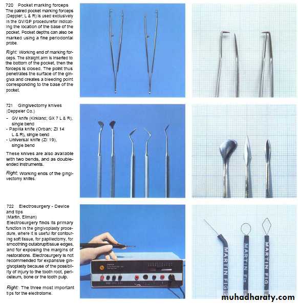 Gingivectomy or gingivoplasty can also be performed with electrosurgery or via a laser device.