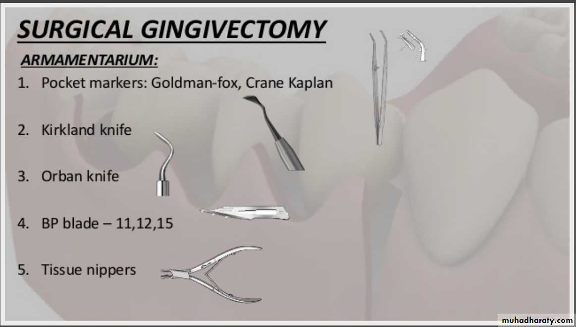 COLLEGE OF DENTISTRY• The step-by-step technique for Gingivectomy (surgical Gingivectomy) is as