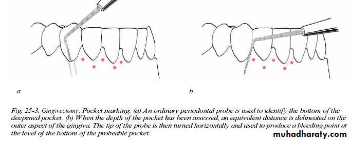 surface by inserting a probe to the bottom of the pocket and puncturing theexternal surface of the gingiva at the depth of probe penetration.