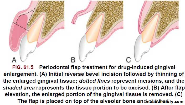 The periodontal flap technique used for the treatment of gingival enlargements is a simple variation of the one used to treat Periodontitis.