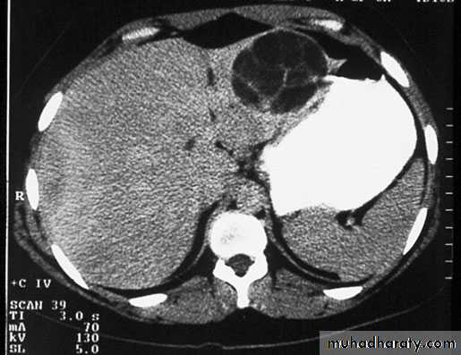 Ultrasound and CT scan are the investigations of choice. The CT scan shows a smooth space-occupying lesion with several septa .An ultrasound of the biliary tract may show abnormality in thegall bladder and bile ducts. Hydatid infestation of the biliary system should then be suspected.