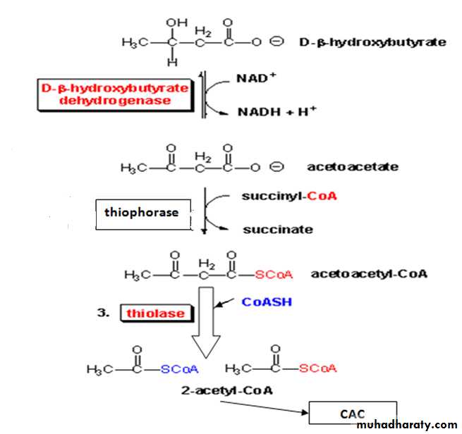 Because the formation of the ketone bodies is the result of increase the rate of β oxidtion that result in increase the production of NADH (more than the NAD) this NADH catalyze the conversion of acetoacetae to β hydroxy butyrate.
