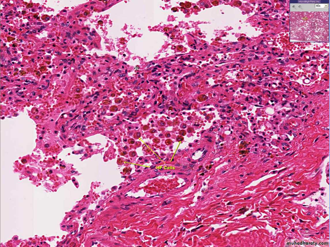 Fig:CHRONIC PASSIVE HYPEREMIA/CONGESTION, LUNG: heart failure cells