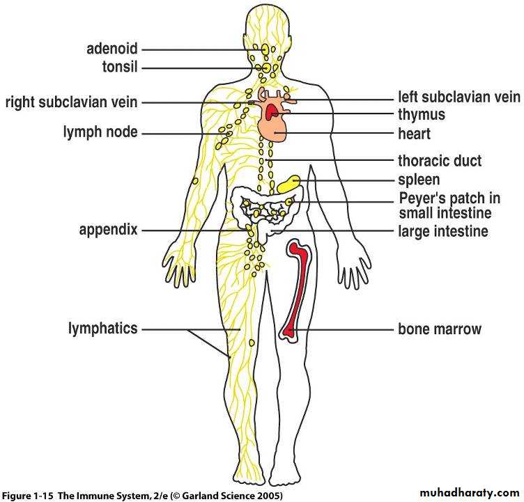a. primary lymphoid organs.1-Bone marrow 2-thymus