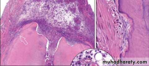 and often cholesterol crystals. It is a self-propagating lesion that is no longer dependent on the root canal system being infected.