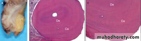Less frequent than resorption, the pathologic deposition of several layers of cementum around the apical structure can be observed in association with some periradicular lesions.