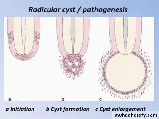 this could allow a fibrous connective tissue capsule to grow into the lumen of radicular cysts. Eventually, the cystic lining epithelium will completely regress or become remnants of epithelial cell rests remaining in the periodontal ligament.