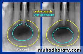Periapical True Cyst : A true cyst has a complete epithelial lining and contains fluid