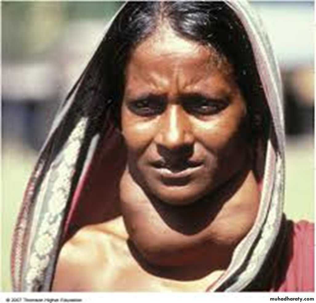 • In those areas where most women have endemic goitre, 1% or more of babies are born with cretinism (characterised by mental and physical retardation).