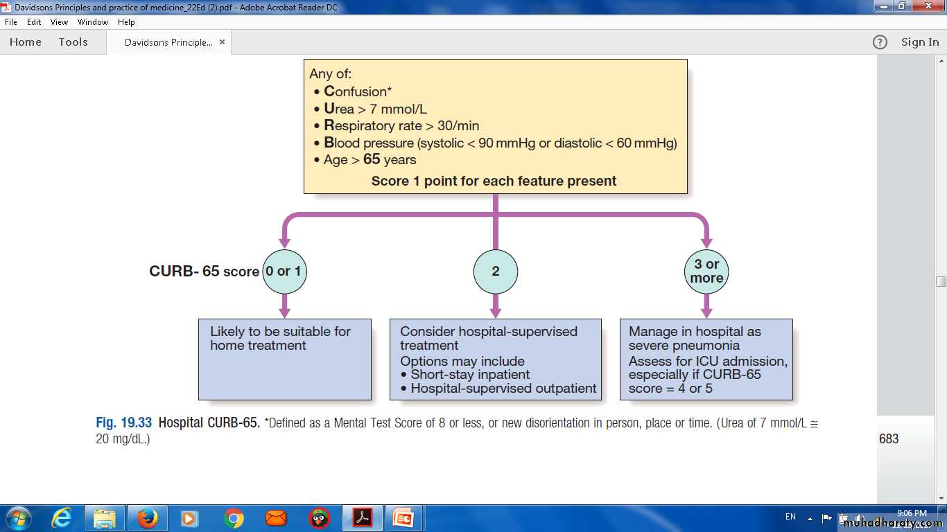 Hospital CURB-65. * Confusion Defined as a Mental Test Score of 8 or less, or new disorientation in person, place or time. ( Urea of 7 mmol/L ≅20 mg/dl)