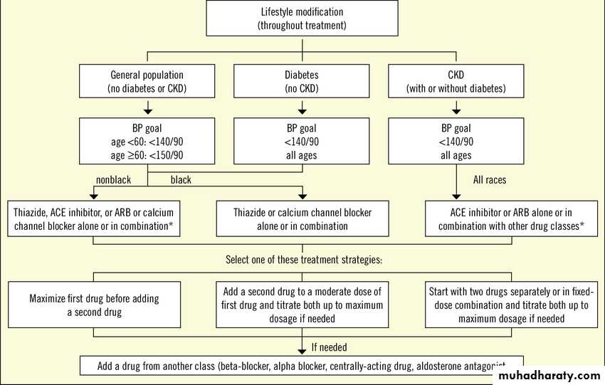 • Two-drug combination for most (usuallythiazide-type diuretic and ACEI or ARB or BB or CCB).