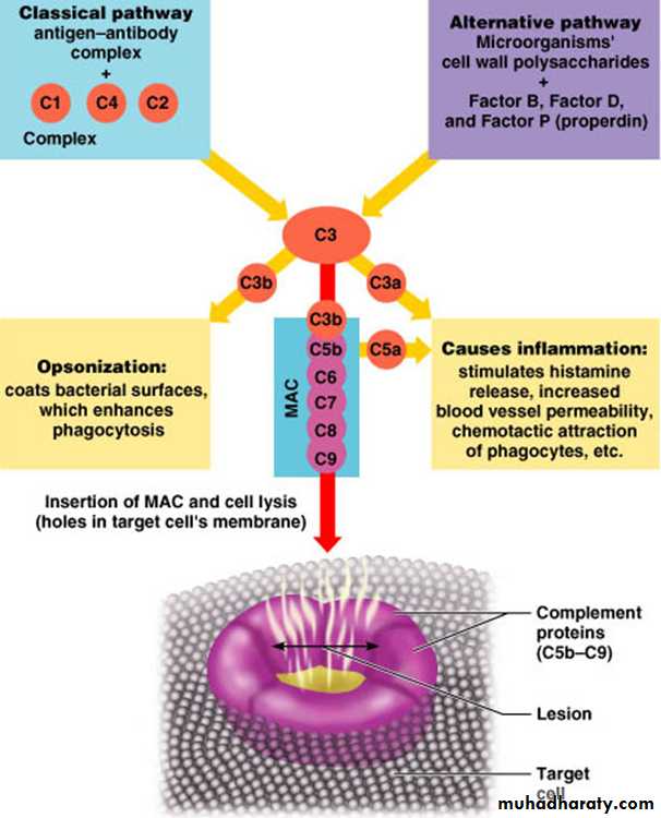 Alternative pathway is triggered by interaction among factors B, D, and P, and polysaccharide molecules present on microorganisms , complement system sometimes is activated without the intermediation of an antigen-antibody reaction. This occurs especially in response to large polysaccharide molecules in the cell membranes of some invading microorganisms