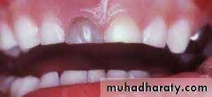 3. Colour of tooth. Early colour change associated with pulp breakdown is visible on the palatal surface of the gingival third of the crown.