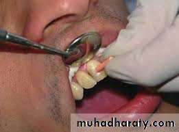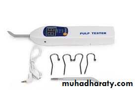 Thermal tests with warm gutta percha (GP) or ethyl chloride (EC) are widely used. However, an electric pulp tester (EPT) in the hands of an experienced operator is more reliable. Vitality test, immediately after trauma it does not give response to vitality test because the tooth is in state of shock, re – examine in the next appointment after 6 weeks, if the child does not give response then the tooth is dead. The vitality test needs cooperation and relaxed child, (child anxiety result in false response).