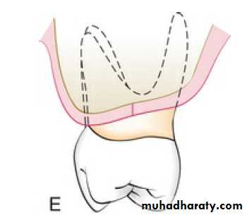 If the secondary objective of surgery is resective and adequate keratinized tissue is present buccolingually, two distal horizontal incisions are placed in keratinized tissue.