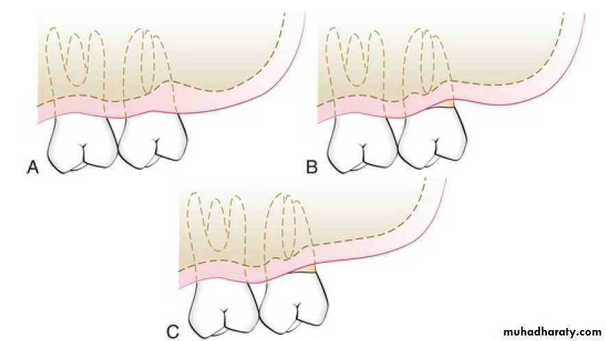 Healing of a distal wedge in the maxilla results in an acute angle between the distal tooth surface and the tuberosity that is biofilm retentive and difficult to clean.