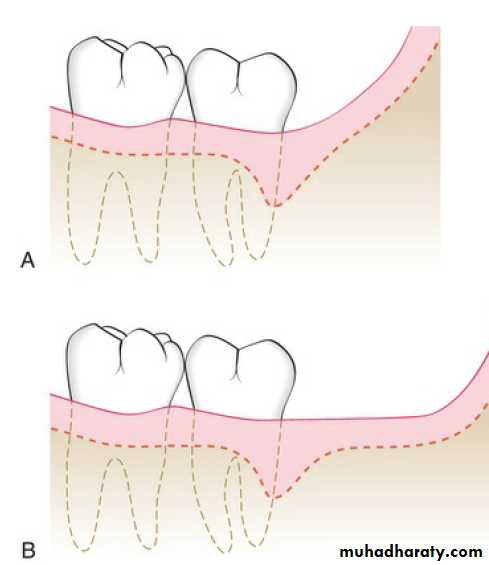 Incisions in the distal mandible differ from those in the tuberosity due to differences in the anatomy of the area. The retromolar pad usually has limited attached gingiva and vestibular depth. The attached gingiva, if present, may not be found directly distal to the molar.