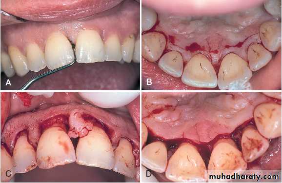 The buccolingual distance between the two horizontal incisions in both techniques depends on the transgingival probing depth and the amount of fibrous tissue involved.