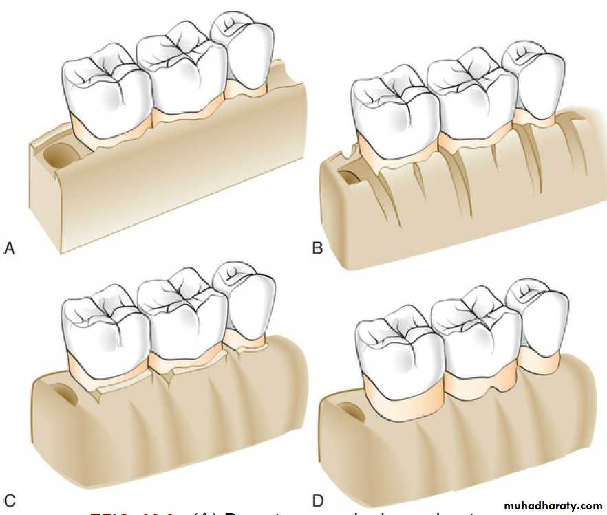 Procedures used to correct osseous defects have been classified in two groups: osteoplasty and ostectomy. Osteoplasty refers to reshaping the bone without removing tooth-supporting bone.