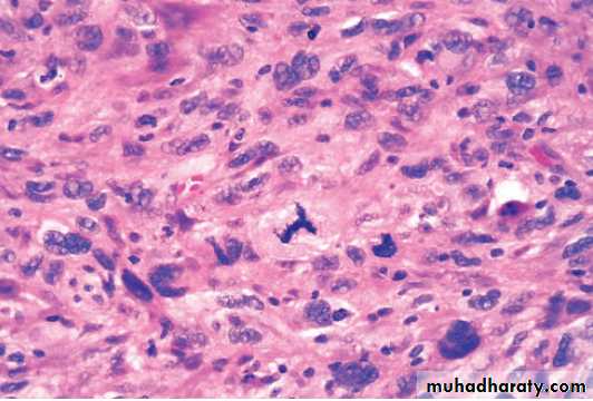 Histopathological features of anaplasia:Cellular and nuclear pleomorphism refers to variation in size and shape of cells and their nuclei.