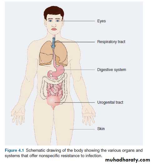 Various organs and systems that offer nonspecific resistance to infection