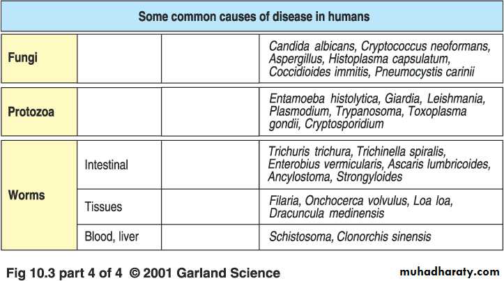 Fungi cause many diseases, most of which are adequately handled by the immune system of the normal host. However, the increased use of immunosuppressive drugs – the immunosuppression secondary to HIV infection – has raised our awareness of these infections. For example, Candida albicans can cause superficial infections in the normal host and is found throughout the intestinal tract and commonly in the vagina. The organism is usually kept under control by the bacterial flora, but changes in these flora secondary to overuse of antibiotics or changes in hormone balance will favor a chronic superficial infection. All of this is exacerbated in the immunocompromised host.02 شباط، 21
