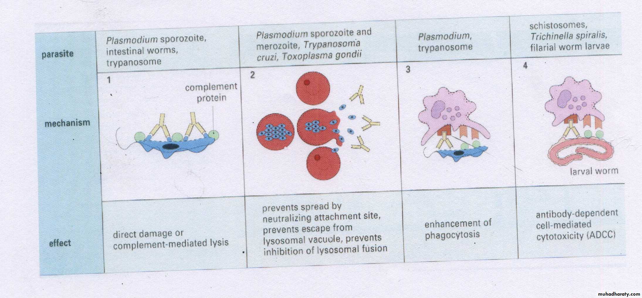 Antibodies have several functions on parasites