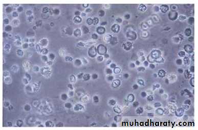Dysmorphic RBCs - Phase contrast microscopy aids in the identification of dysmorphic RBCs. The presence of RBC casts is often conclusive evidence for the presence of glomerulonephritis.WBCs are seen most commonly in urinary tract infections.& interstitial nephritis.