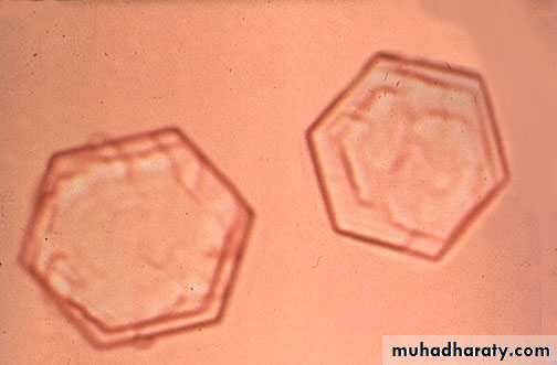 Crystals often can be a normal finding in the urine or serve as clues to pathophysiologic processes.hexagonal crystals seen with cystinuria, are always abnormal .