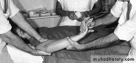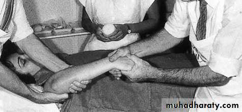 b. Hold the reduction in the proper position for a suitable period to allow union; this can be achieved by variable ways:1. Cast immobilization: by using the plaster of Paris (POP) where we try to immobilize the reduced fr in position together with a proximal and a distal joint., this takes longer time and cause stiffness of the involved joints. very good choice in upper limb fracture s .