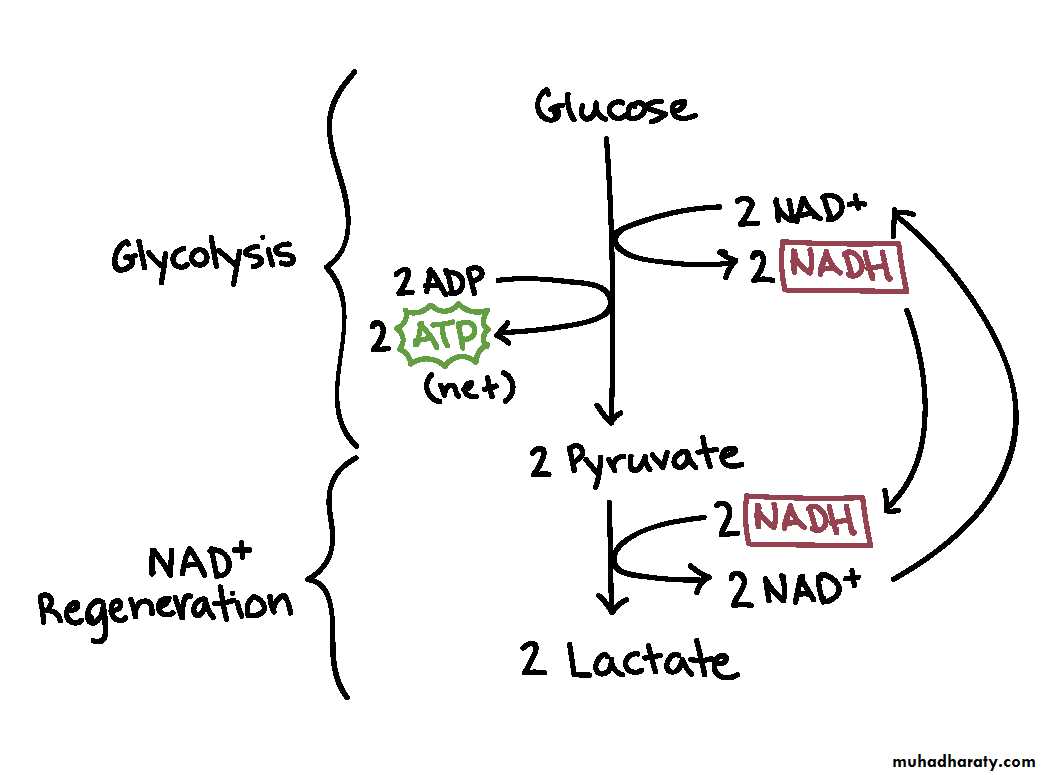 • Fermentation the anaerobic breakdown of glucose that results in a gain of 2ATP molecules and end products such as alcohol and lactate