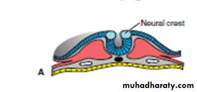 As the neural folds elevate and fuse, cells at the lateral border or crest of the neuroectoderm• begin to dissociate from their neighbors. This